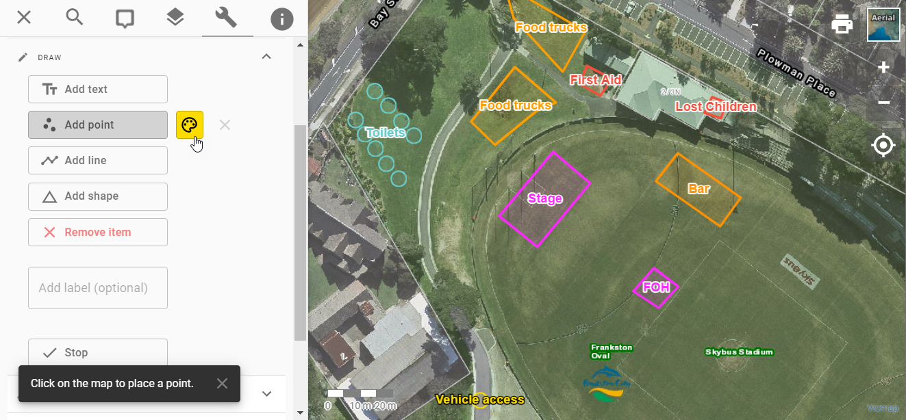 Pozi’s annotation tool enables users to add any content to the map and download or publicly share the results.